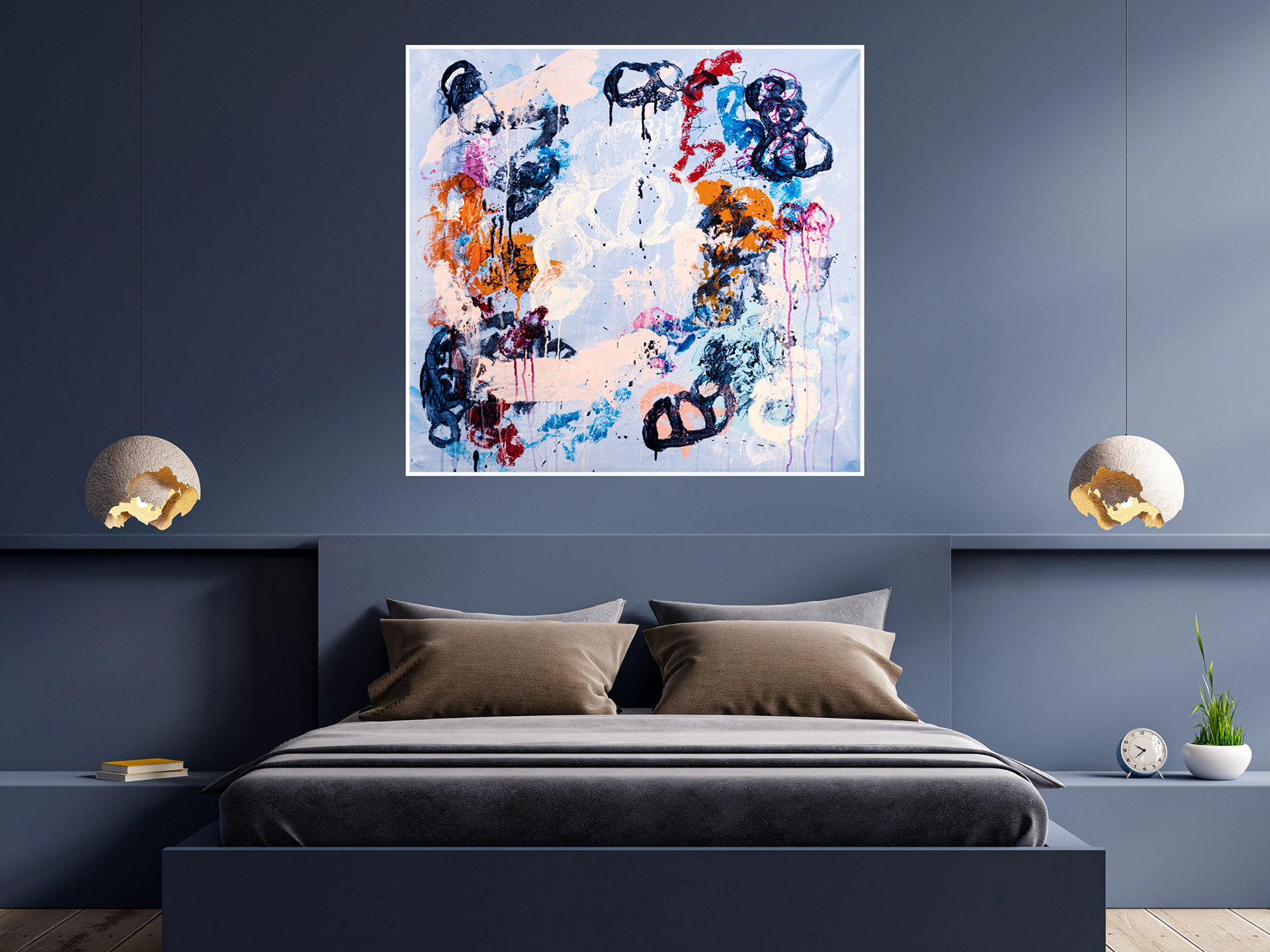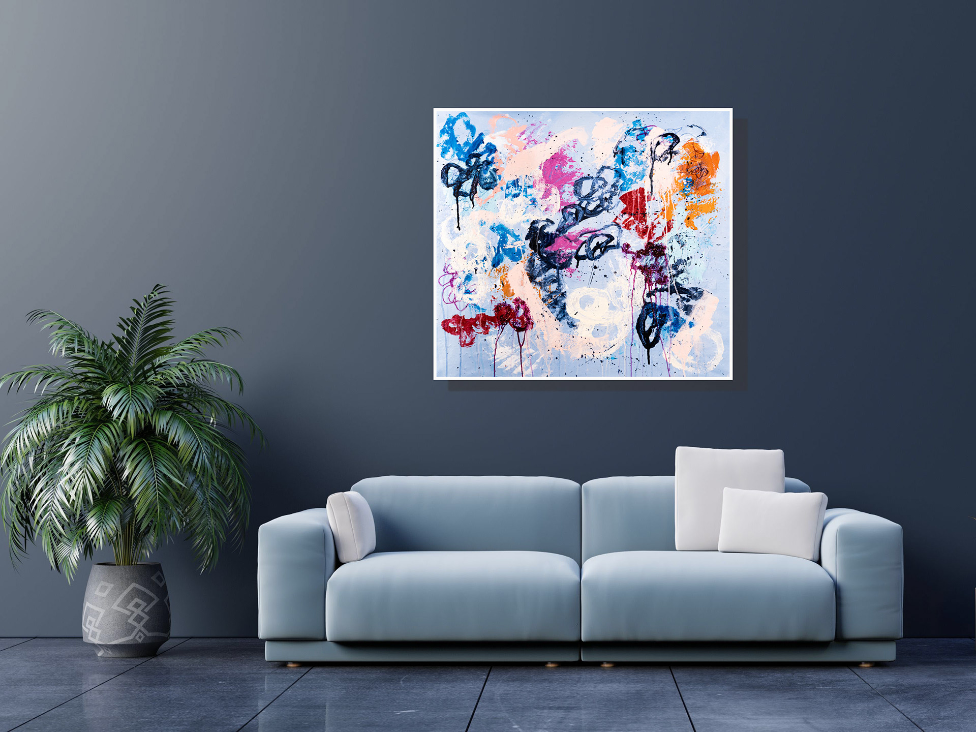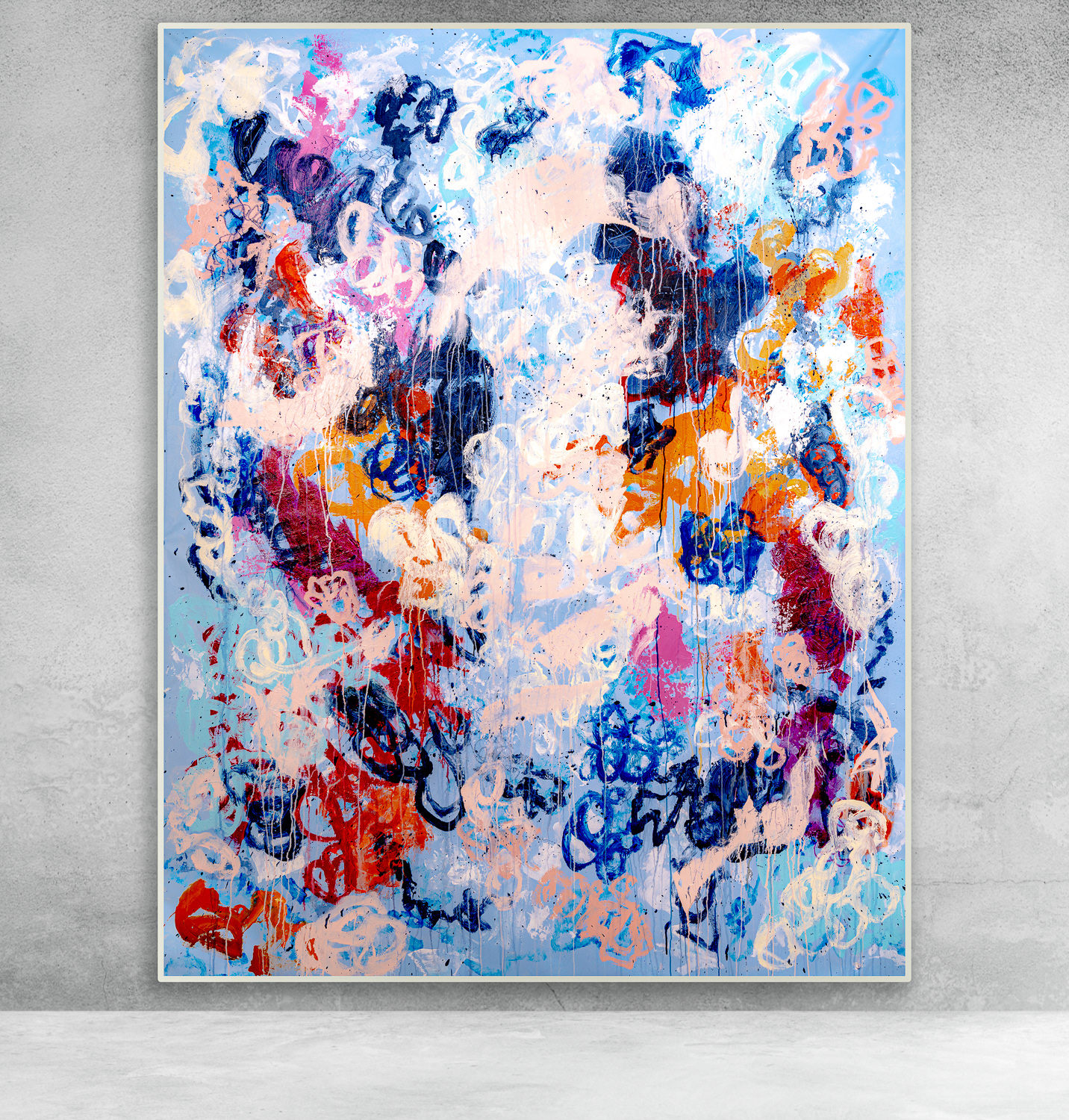 Je tenais à réaliser cette toile qui en fait est la seconde de la série Mouvement. Je tenais à en faire une seconde pour deux raisons: La première car je tenais à garder la première pour moi même et je ne pourrais jamais m'en séparer, elle représente mon état d'esprit lors du premier confinement et toutes les grandes décisions que j'ai prises à partir du moment ou j'ai décidé de peindre du grand format... La seconde raison, car je tenais absolument à utiliser une toile 100% coton 14.7 oz/verge carrée (500 g/m2)