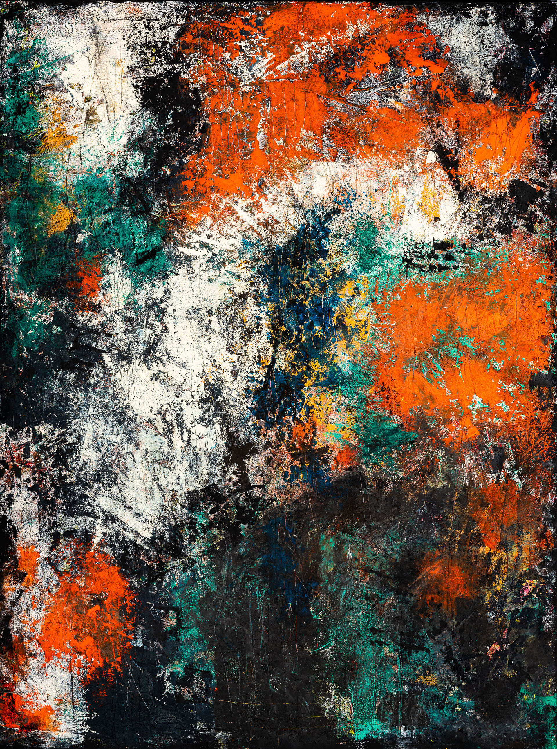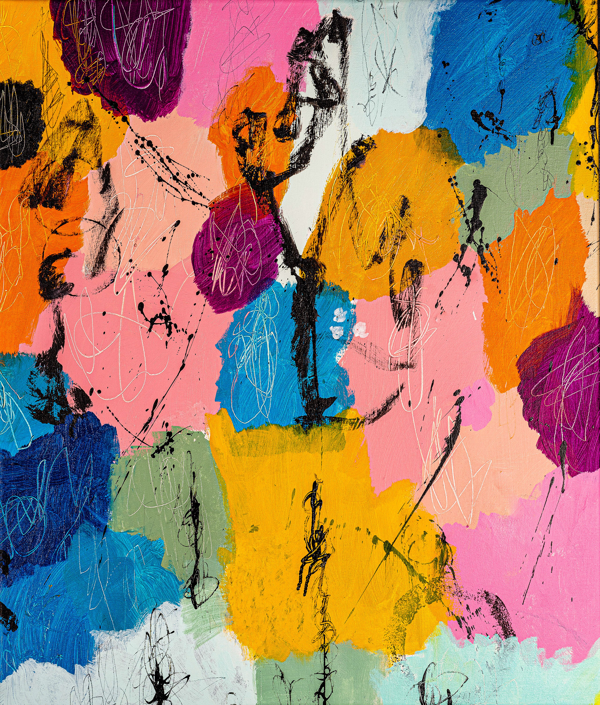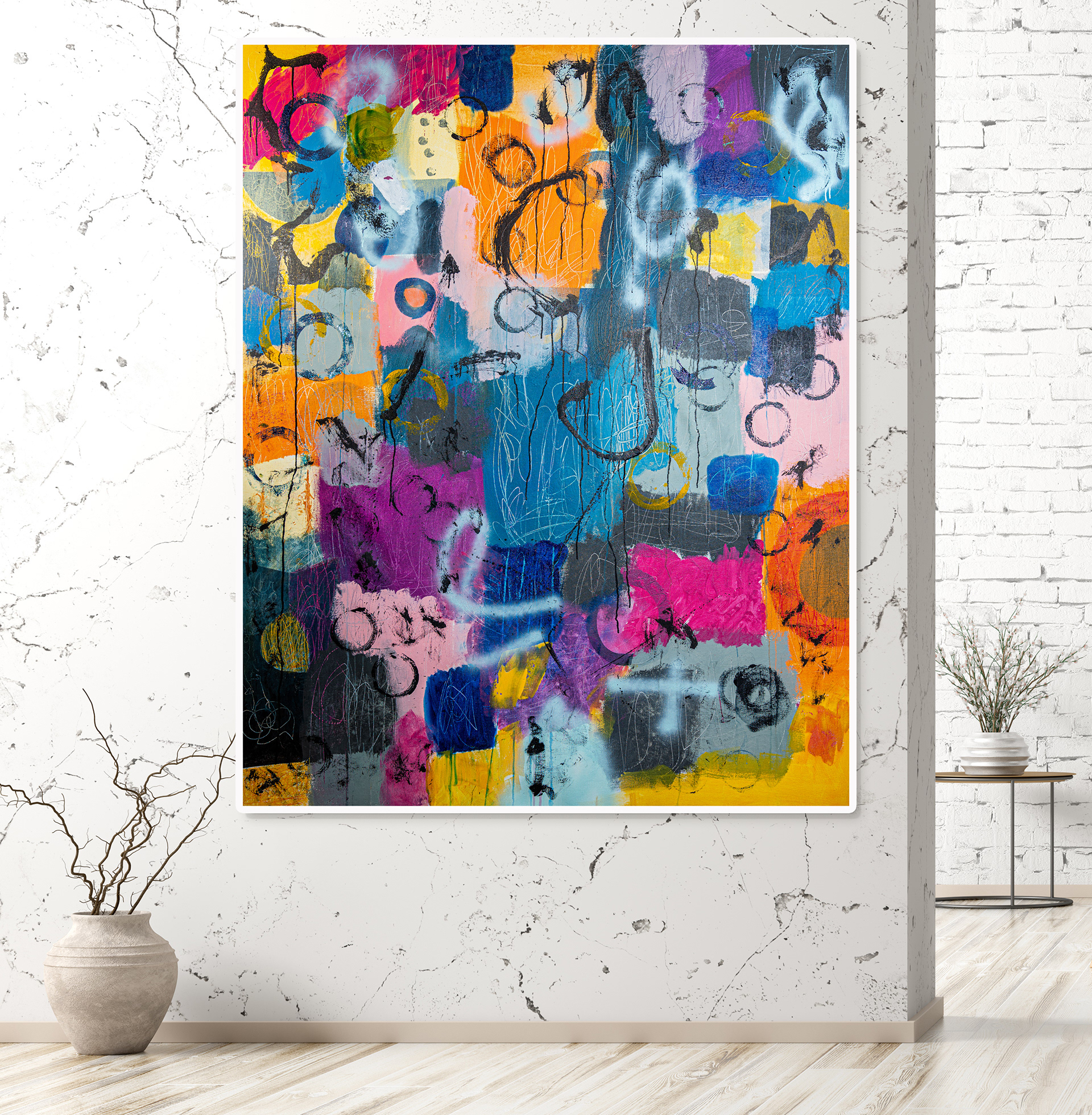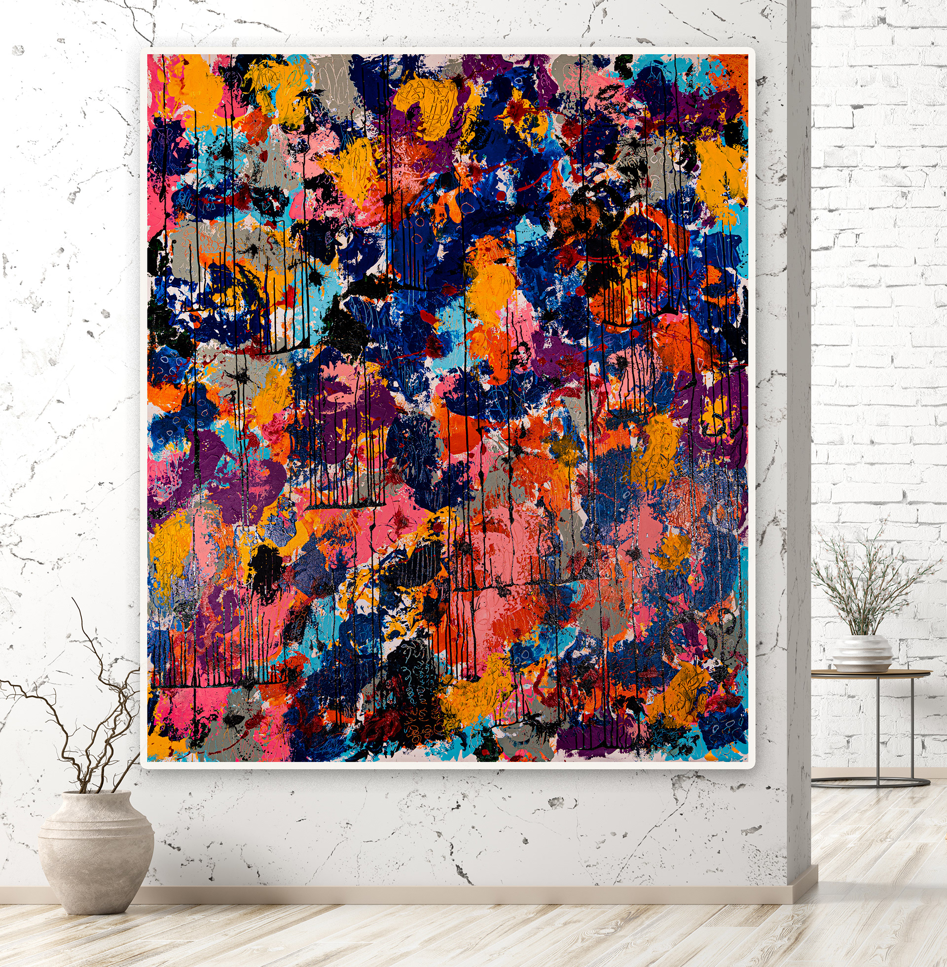 Dans cette œuvre, je célèbre les nuances vibrantes de la vie à travers une explosion de couleurs réalisée à l'huile, pigment et cire froide. L'abstraction me permet d'explorer les émotions pures sans les limites de la forme.