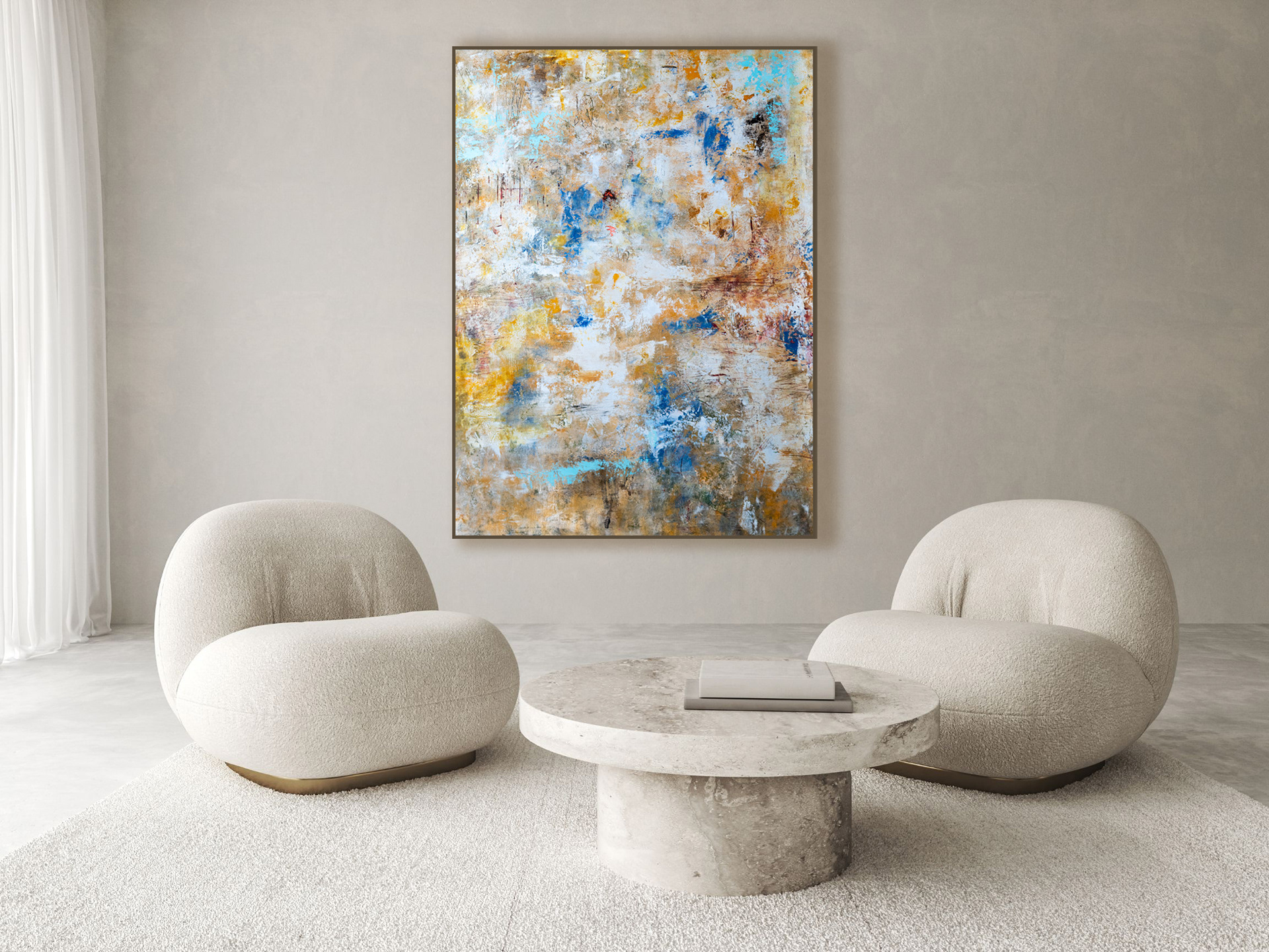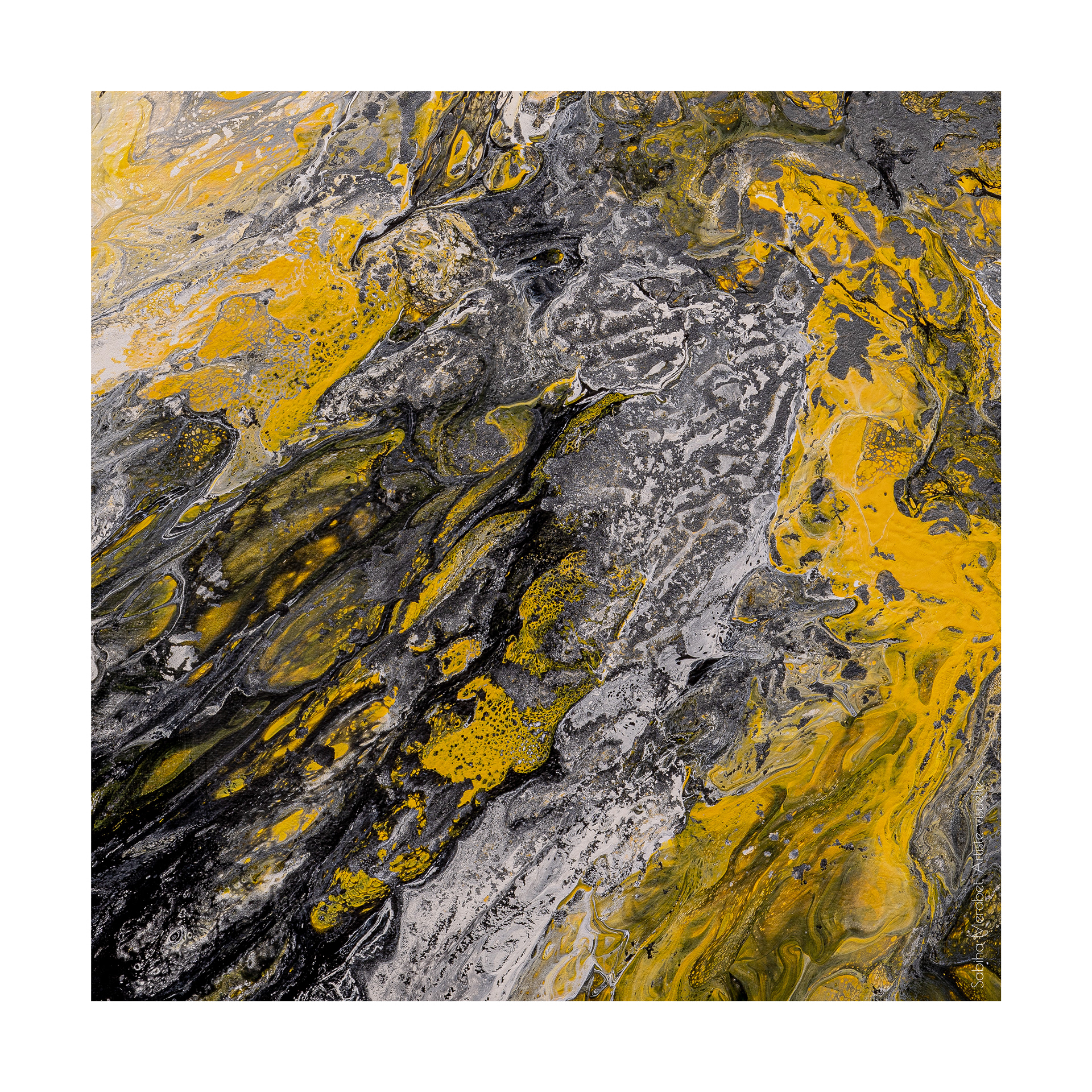 Chaque mouvement de la main laisse une empreinte organique sur la toile, créant des textures riches et des nuances subtiles.