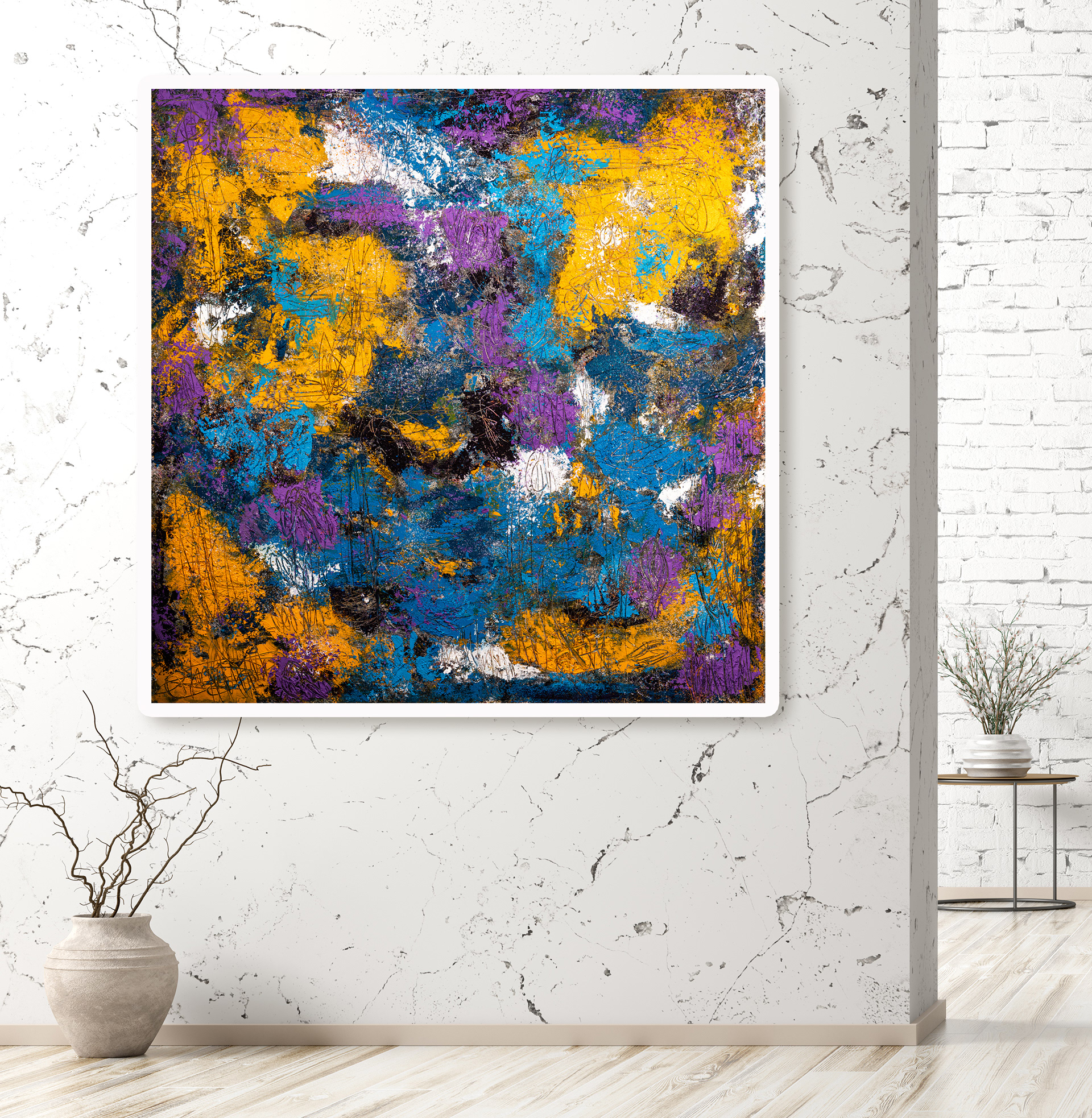 Dimensions : Grande toile 50 x 50 pouces (127 x 127 cm)