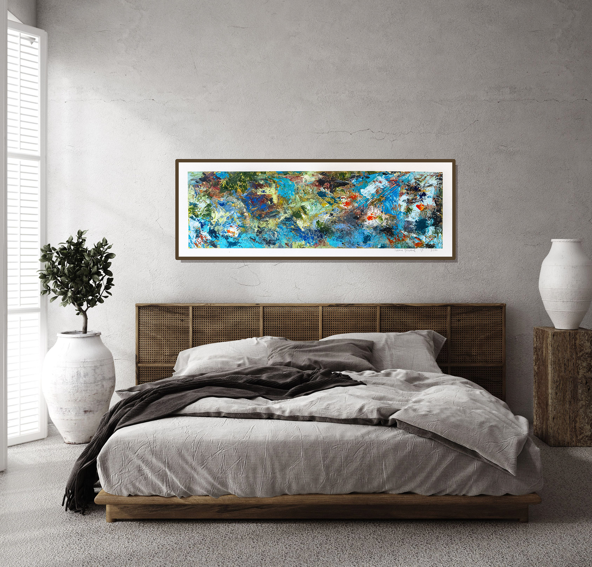 C'est une oeuvre de 26 x54 pouces (68 cm x 138 cm)