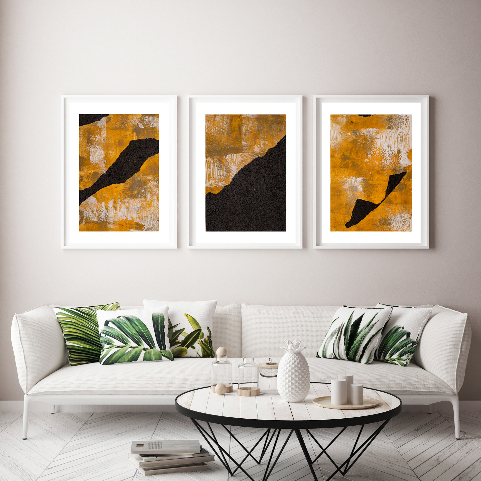 peinture à l'huile et cire froide (cold wax Meduim et du pastel. Ces oeuvres viennent en une série de 3.
